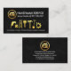 An all black marble cover features a set of gold handyman tools. Just underneath the tools is a caption detailing the service you offer ; Change this to suit your own service needs. Over at the top is a gold "home landscape" logo you can use with the business name "HANDYMAN SERVICE" and its contact details.