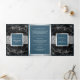 Black Marble Silver Glitter Dusty Blue Wedding Tri-Fold Invitation