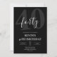 Bold black masculine milestone birthday invitation featuring a large “40” and elegant script “forty” typography. Modern minimalist layout for a 40th birthday celebration with clean, upscale style for men’s adult party invites.