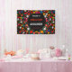 Shop black Mexican fiesta floral quinceañera banner with gold tiara accents—perfect for stylish and festive 15th birthday party décor and photo backdrops.