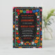 Black Mexican Fiesta Floral Gold Tiara Quinceañera Invitation