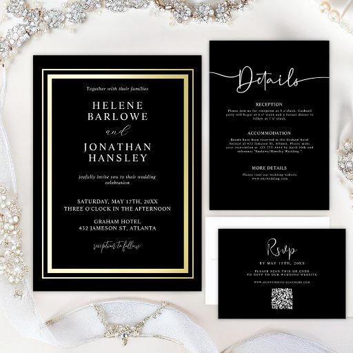 Black Minimal Modern Elegant Wedding QR Code RSVP Card