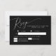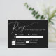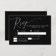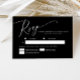 Elegant and minimal wedding RSVP card featuring a modern script text at the top on a black background. This simple design will work for any season. The card also includes meal choice options for guests to select from.