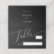 Minimal and simple table number place card for your wedding featuring a modern script font that says "table" with a blank line where you can fill in the table number and the guest's name. You can add the bride and groom's names on the back. The background colour is black.