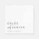 Add a modern and stylish touch to your celebration with these wedding paper napkins featuring minimalist handwritten script and clean typography. Designed with simplicity in mind, they complement a wide range of themes, from contemporary to rustic or elegant. Perfect for cocktail hour, dessert tables, or seated dinners, these napkins bring cohesion to your event details. You can update the text with your names, wedding date, or a short phrase. They're a small detail that helps tie everything together and makes your guests feel welcomed.