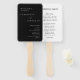 These fans were exactly as pictured. The quality is great. Perfect favor for a wedding!...I will make assembly a little easier by using a hot glue gun and finish them off with a ribbon. Beautifully printed. Crisp and clear text.
