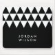 Minimalist black mouse pad featuring a modern white triangle pattern that you can personalise with your name.