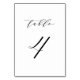 Table 4. Elegant table numbers card featuring black minimalist script. This black and white table number is perfect for weddings, graduation, baby showers, bridal showers and other events. Other number and colour are available.