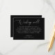 This elegant wedding wishing well card features delicate white script paired with classic serif text on a bold black background. Designed for couples who prefer a modern, minimalist aesthetic, this insert is a tasteful way to request honeymoon fund contributions in place of traditional gifts. Perfect for formal or black-tie weddings. This card blends simplicity with sophistication and is easy to personalise with your names and wording.