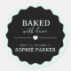 Add a homemade touch to your baked goods with this "Baked with Love from the kitchen of Sticker." Perfect for sealing cookie boxes, bread bags, or a gift jar. Features a scalloped edge, sweetheart divider, and a customizable name. Ideal for home bakers, small businesses, and kitchen gifts.