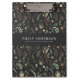 black modern botanical elegant contemporary floral black moody stylish personalised business clipboard design.