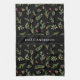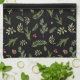 Black Modern Christmas Pine tree leaves botanical elegant moody stylish design. kitchen towel.