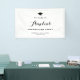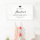 Welcome guests to your event with this customisable graduation welcome banner. It features black modern calligraphy, simple typography and a graduation cap. Personalise black and white graduation sign by adding your own details. This calligraphy graduation banner is perfect for any graduation theme. Other colours are available.