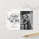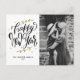 Black Modern Calligraphy Photo Happy New Year Holiday Postcard