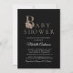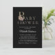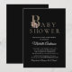 This Black Modern Elegant Baby Shower Invitation features elegant font with Bronze Shining Orchide and white text on the black background. The reverse side of invite is simple black.