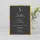 This design is simple yet elegant, complete with the groom or bride's last initial at the top. The border is a gold real foil, for a touch of class. The back holds your beautiful photo under a smoky transparent overlay. Minimal, yet stunning, this invitation will definitely make an impression. Created by Simply Farmhouse Press, it's part of the Black Modern Elegant Minimal suite of wedding cards in our shop.