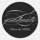 Black Modern Elegant Script Graduation Classic Round Sticker