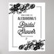 A customisable bridal shower welcome sign featuring black flowers and modern typography. This is a part of a wedding collection, matching items and other colours available.