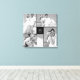 Black Modern Grid Monogram Wedding 4 Photo Collage Canvas Print