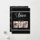 Celebrate your love this Valentine's Day with this beautiful 'My Love' photo collage card. Featuring a chic black background, this card is designed to showcase your cherished memories with a space for three of your favorite photos. The elegant script font spells out 'My Love' with sweet heart accents, accompanied by 'Happy Valentine's Day' and a space for a special name. Below the photos, you can add your name and date, making it a truly personal keepsake. This card is perfect for expressing your deepest affections to your girlfriend or wife.