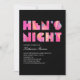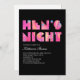 Modern Hen's Night party invitations with a black, hot pink, blue, yellow and red coloured design. For an extra shimmer choose silver metallic paper.