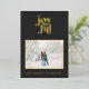 black modern joyful 1 photo foil holiday card