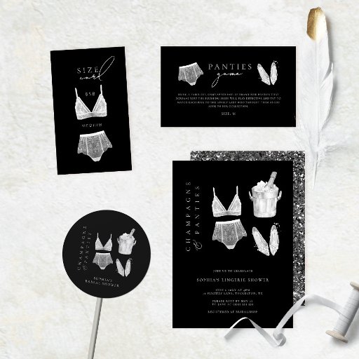 Get ready to add a dash of sass to your bridal bash with this Black Modern Lingerie Shower Invitation! It's the ultimate blend of chic and playful, perfect for a lingerie themed bridal shower or bachelorette party. The sleek black design sets a sophisticated tone, while flirty lace and oh la la details bring a touch of girly glam. Celebrate in style with this trendy invite that's all about the panties, lace, and sheer excitement! It's the perfect way to announce your fabulous lingerie party and ensure everyone's ready for a night of girly giggles and unforgettable fun!