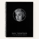 A modern minimalist personalised business notebook for anyone. A simple and professional way to introduce your business. Personalise with your text and photo to create your own unique elegant black and white business notebook. Customise even further with a custom colour background or font.
