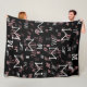 black modern monogrammed fleece blanket