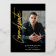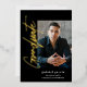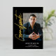 Celebrate your Graduate with this Photo Black Modern Script Graduate Gold Foil Invitation designed in black, with a central photo, Graduate in Gold Foil. Add graduation party details in the back of the invitation. This invitation is perfect for a male graduate like your son, graduating from college or university