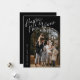 Black Modern Script Happy New Year Arch 2 Photo features a fun and modern script on a full bleed photo, along with a second photo on the back and room for your message.