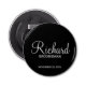 featuring personalised groomsman's name in white modern script font style with title and wedding date in modern sans serif font style on black background.