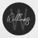 This design features personalised name in white modern handwriting script font style and monogram in grey modern sans serif font style as background, on black background.