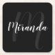 Black Modern Script Personalised Monogram and Name Square Paper Coaster