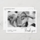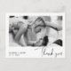 Single photo wedding thank you card featuring the couples photo within a white frame, a black modern minimalist calligraphy font heading and the couple's details on the front. The couples message is ready to be edited on the back. Great for a couple looking for a simple one photo wedding thank you postcard.