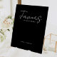 Welcome to our Black Modern Script Wedding Favours Pedestal Sign design, where modern minimalism meets the artistry of calligraphy. This curated aesthetic brings an air of sophistication to your special day- with a twist of boho, casual charm. The combination of simple typography with a stylish script font adds a unique personality to your wedding. This classic design offers a timeless, polished look that's perfect for spring, summer, fall, or winter weddings. A simple understated palette of black backdrops and white text creates the perfect neutral backdrop for your celebration. Make your wedding truly elegant with our lovely Modern Script collection. As with all of our designs, if you have any questions or special requests, please just ask.
