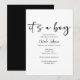 Black Modern Simple Script Boy Baby Shower Invitation