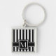 Black Modern Stripe with Monogram Key Ring