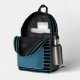 Step into modern sophistication with this Print Cut & Sew Backpack, designed for those who love a balance of style, simplicity, and function. Featuring a deep black background adorned with modern teal blue line art (#37728c), this backpack stands out with its clean geometric elegance and artistic charm.