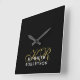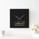 Black Monogram Gold White Minimalist Modern Men Square Wall Clock