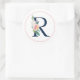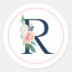 Black Monogram Letter R with Pink Flower Classic Round Sticker