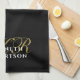 Black Monogram Minimalist Gold White Elegant Men Tea Towel