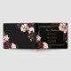 Make a bold statement with this dramatic moody wedding guest book, featuring realistic burgundy and blush florals on a deep black background with elegant gold accents. Perfect for fall, winter, or gothic-inspired weddings, this luxurious floral seating chart adds a touch of decadent romance to your reception décor. Ideal for modern, elegant, and moody wedding themes. Matching items available in store. (c) Somerset Fine Paperie
