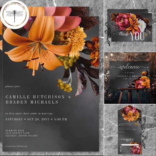 Black Moody Gothic Orange Lily WeddingDesigned by Kathe Santillo