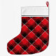 A bright and colourful buffalo plaid red and black print holds a black silhouette image of a moose on the front of this Holiday stocking. At the top is a white border with your custom text in black. The back of the stocking has the same pattern without the border, text or moose image.*Patter design credit to EphrazyDesign.