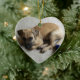 Black-mouth cur puppy with blue toy ceramic tree decoration