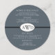 Round wedding menu template with monogram in centre. Neutral black, grey and white with four sections for appetizers, salad, entrees and dessert section in white printed text. Add three initials (wedding monogram) to the centre white oval. Reverse is black. Need other colours? Please request help, and I will gladly create it for you!
