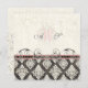 COLOR PALETTE: black, white and pink DESIGN COLLECTION: aged, worn damask hand painted from original art work of Audrey Jeanne Roberts, this elegant and sophisticated wedding invitation can be customised to any colour you require. The top part of the invitation is a crackle finish soft off-white with a hand drawn flourish swirl design element across a border of black and pink. The bottom portion is a textured aged black with white floral modern damask pattern. The reverse side is the crackle finish soft cream with swirls and flourishes.