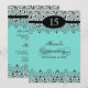 Black n White Lace Look Silver 15th Quinceanera Invitation