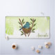 A black-naped monarch perches in its cosy nest among leafy branches, surrounded by tropical foliage. The detailed illustration captures the bird’s soft blue feathers and the lush greenery of its jungle home.